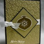 Hi Everyone – I have to tell you the new Ornament punch has so many possibilities. Check out this card using the Ornament punch and the matching Delightful Decorations Stamp…